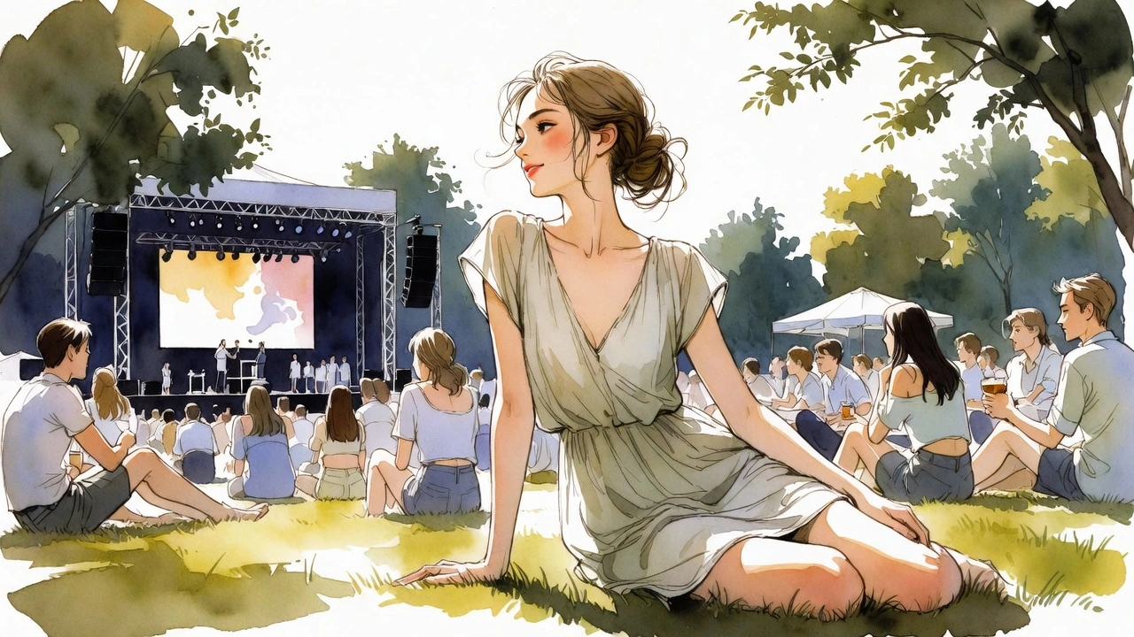Laura attends an open-air concert as part of a summer festival. The local band combines modern rhythms with traditional influences, creating a captivating sound experience. Sitting on the grass, she watches how the audience responds with applause and cheers. She records a video to share on social media. At the end of the concert, she reflects on the importance of supporting local artists and enjoying music as a community.